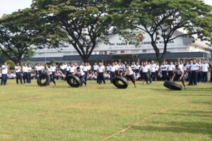 Lintas Surabaya, Surabaya -Menyemarakkan Hari Ulang Tahun Kemerdekaan Republik Indonesia ke-78, prajurit Komando Pembinaan Doktrin Pendidikan dan Latihan TNI Angkatan Laut (Kodiklatal) saling adu kekuatan fisik. Ini terjadi saat diadakan Lomba 17-an di Lapangan Laut Maluku Mako Kodiklatal Bumimoro Surabaya, Jumat (11/8/2023).
