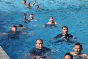 Lintas Surabaya, Surabaya – Kini ada fasilitas olahraga yang baru di Komando Pembinaan Doktrin Pendidikan dan Latihan TNI AL (Kodiklatal) Bumimoro Surabaya, yakni hadirnya Kolam Renang Tirto Sagoro-12 yang telah selesai pembangunannya. Komandan Kodiklatal Letnan Jenderal TNI Marinir Suhartono Bersama Para Pejabat Utama Kodiklatal pun langsung mencoba kolam renang dengan kedalaman 5 meter tersebut , pada Senin (14/8/2023).