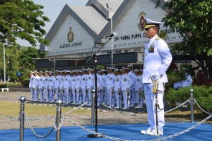 Lintas Surabaya,Surabaya – Inspektur Komando Pembinaan Doktrin, Pendidikan dan Latihan TNI AL (Irkodiklatal) Brigjen TNI Marinir Amir Faisol, memimpin pelaksanaan Upacara peringatan HUT ke-78 Kemerdekaan Republik Indonesia Tahun 2023 yang digelar di Lapangan Laut Maluku, Mako Kodiklatal Bumimoro Surabaya, Kamis (17/8/2023).