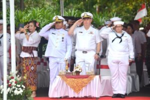Lintas Surabaya, Surabaya – Ada yang menarik pada Upacara Peringatan Hari Ulang Tahun Kemerdekaan Republik Indonesia ke-78 Tahun 2023 di Kota Denpasar. 15 (lima belas) prajurit Kru Kapal Perang USS Howard (DDG-83) yang saat ini sandar di Pelabuhan Benoa Bali, turut serta menghadiri upacara yang diselenggarakan di Lapangan Puputan Margarana Niti Mandala Renon Kota Denpasar, Bali, (17/08/2023).