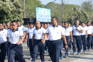Lintas Surabaya, Surabaya – Wujudkan pola hidup sehat dilingkungan Lantamal V, Komandan Pangkalan Utama TNI Angkatan Laut (Danlantamal) V Laksamana Pertama TNI Eko Wahjono mengajak Prajuritnya untuk melaksanakan Olahraga bersama di Lapangan Mako Lantamal V, Surabaya. Jumat(15/09/23)