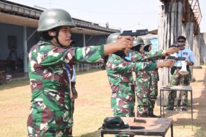 Lintas Surabaya, Surabaya – Dalam rangka mengasah kemampuan menembak sebagai calon Perwira TNI AL, sebanyak 32 Siswa Pusdikbanmin yang terdiri dari 22 Siswa Pendidikan Pembentukan Perwira (Diktukpa) Angkatan LIII Korps Suplai dan 10 Siswa Diktukpa Korps Khusus melaksanakan latihan menembak pistol di Lapangan tembak J W Kainama Kodiklatal, Pesapen Surabaya. Jumat, (22/09/2023).