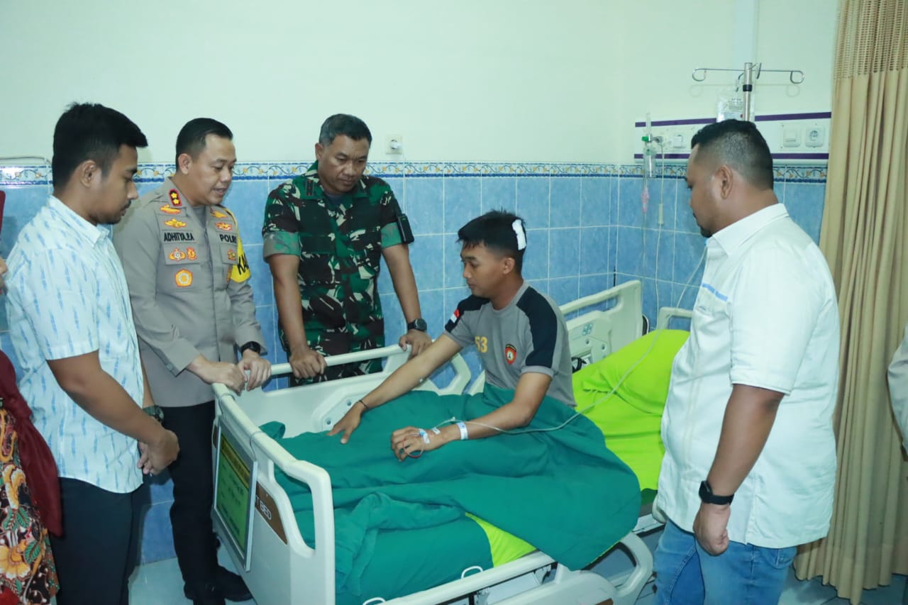 Lintas Surabaya, Gresik – Kapolres Gresik AKBP Adhitya Panji Anom didampingi Bupati Gresik Fandi Akhmad Yani dan Dandim 0817/Gresik Letkol Inf. Ahmad Saleh Rahanar beserta Forkopimda Kabupaten Gresik menjenguk korban kerusuhan suporter di Stadion Gelora Joko Samudero.Rabu(22-11-2023)