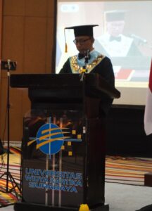 Dr. Filipus Priyo Suprobo, S.T., M.T, Rektor UWIKA dalam sambutannya menjelaskan, wisuda diikuti 141 para wisudawan/wati periode ini, yang pada akhirnya menyelesaikan studinya dan siap untuk berkarya di tengah masyarakat.” Jelas Priyo.