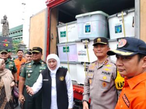Sebanyak 81 truk bantuan di berangkatkan dari lapangan apel KodamV/Brawijaya, Senin 27 November 2023. Bantuan tersebut akan di angkut oleh KRI Dr. Radjiman milik TNI Angkatan Laut di bawa ke Jakarta yang akan di satukan dengan bantuan lain dari berbagai daerah.