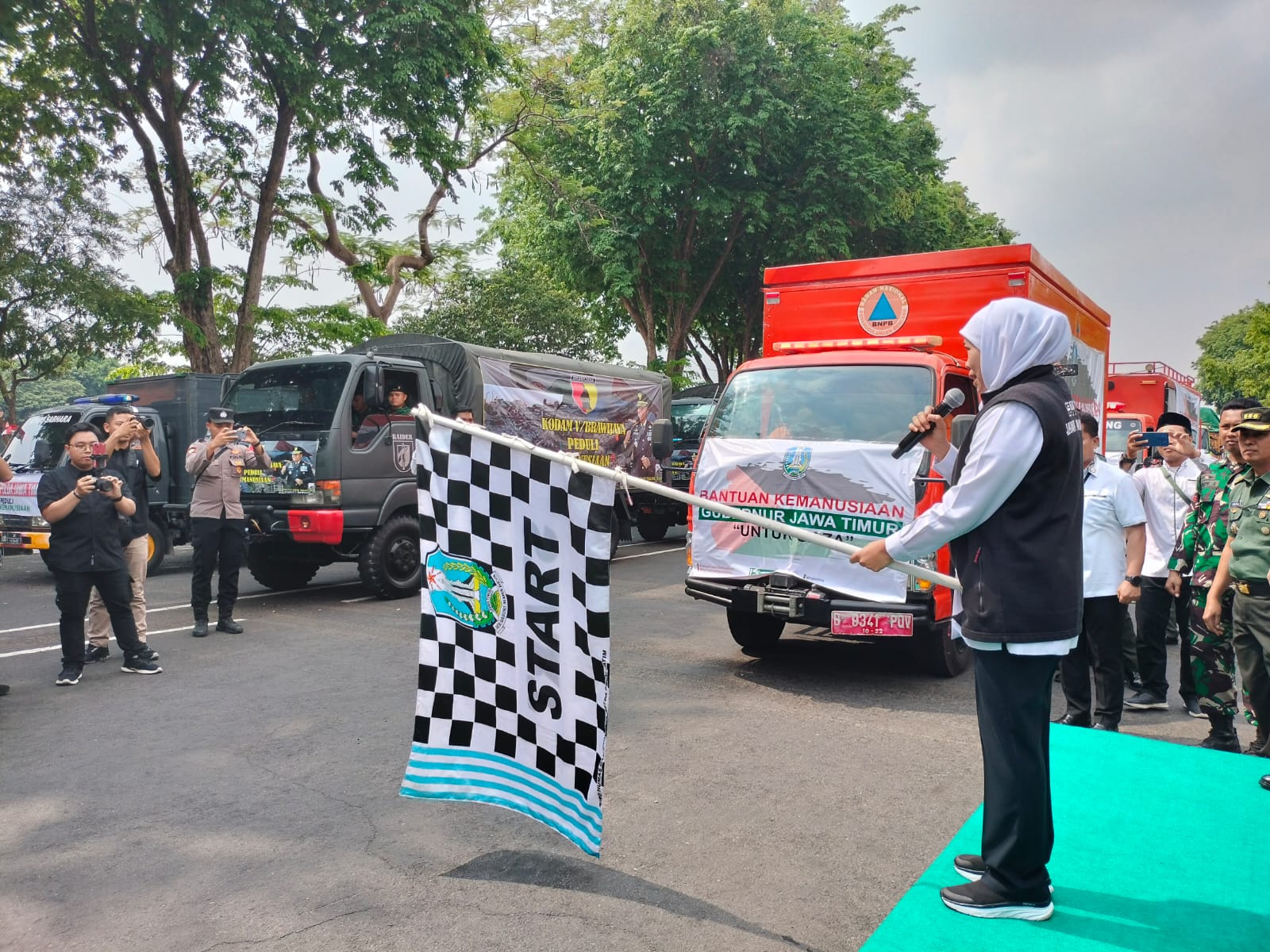 Sebanyak 81 truk bantuan di berangkatkan dari lapangan apel KodamV/Brawijaya, Senin 27 November 2023. Bantuan tersebut akan di angkut oleh KRI Dr. Radjiman milik TNI Angkatan Laut di bawa ke Jakarta yang akan di satukan dengan bantuan lain dari berbagai daerah.