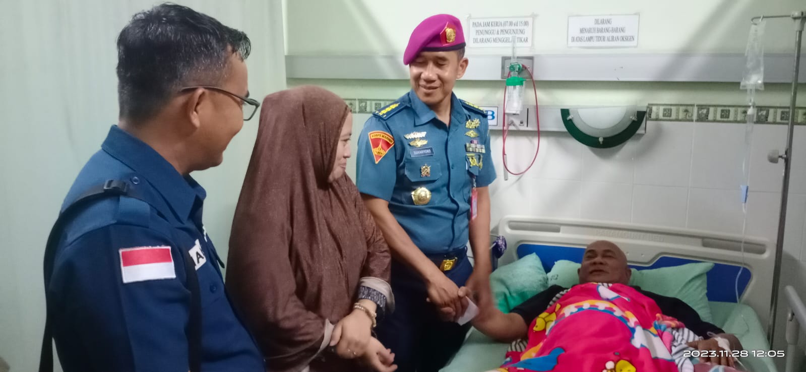 Lintas Surabaya, Surabaya – Keluarga Besar Dinas Penerangan (Dispen) Kodiklatal dipimpin Kadispen Kodiklatal Kolonel Marinir Suharyono melaksanakan anjangsana salah satu anggota Dispen bernama Pegawai Negeri Sipil (PNS) Pebruartanto Widodo (55 th) yang dikenal si personel tangguh, saat ini terbaring sakit didampingi sang Istri yakni Ayu Susilowati (48 th), bertempat di Ruang Perawatan G2 RSPAL dr. Ramelan Surabaya. Selasa, (28/11/2023).
