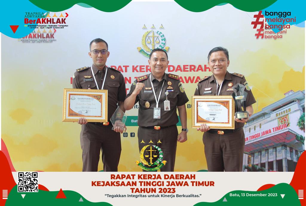 Penghargaan diberikan langsung oleh Kepala Kejaksaan Tinggi Jawa Timur Dr. Mia Amiati, SH. MH didampingi oleh Asisten Tindak Pidana Khusus Kejati Jatim Ardito Muwardi, SH. MH Kepada Kepala Kejaksaan Negeri Tanjung Perak Ricky Setiawan Anas, SH. MH didamping oleh Kepala Seksi Bidang Pidana Khusus Ananto Tri Sudibyo, SH. MH.