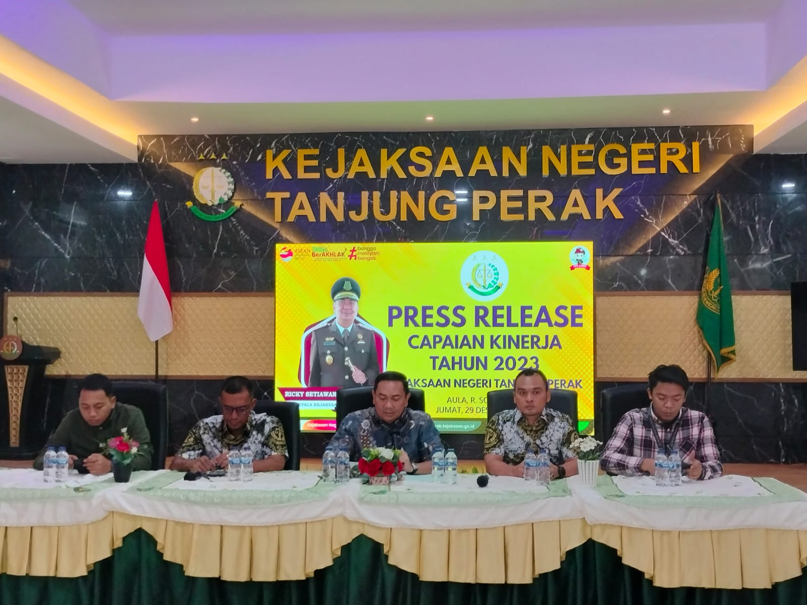 Lintas Surabaya, Surabaya -Kejaksaan Negeri Tanjung perak menggelar pers rilis laporan capaian kinerja tahun 2023 di kantor Kejari Perak pada Jumat 29 Desember 2023.