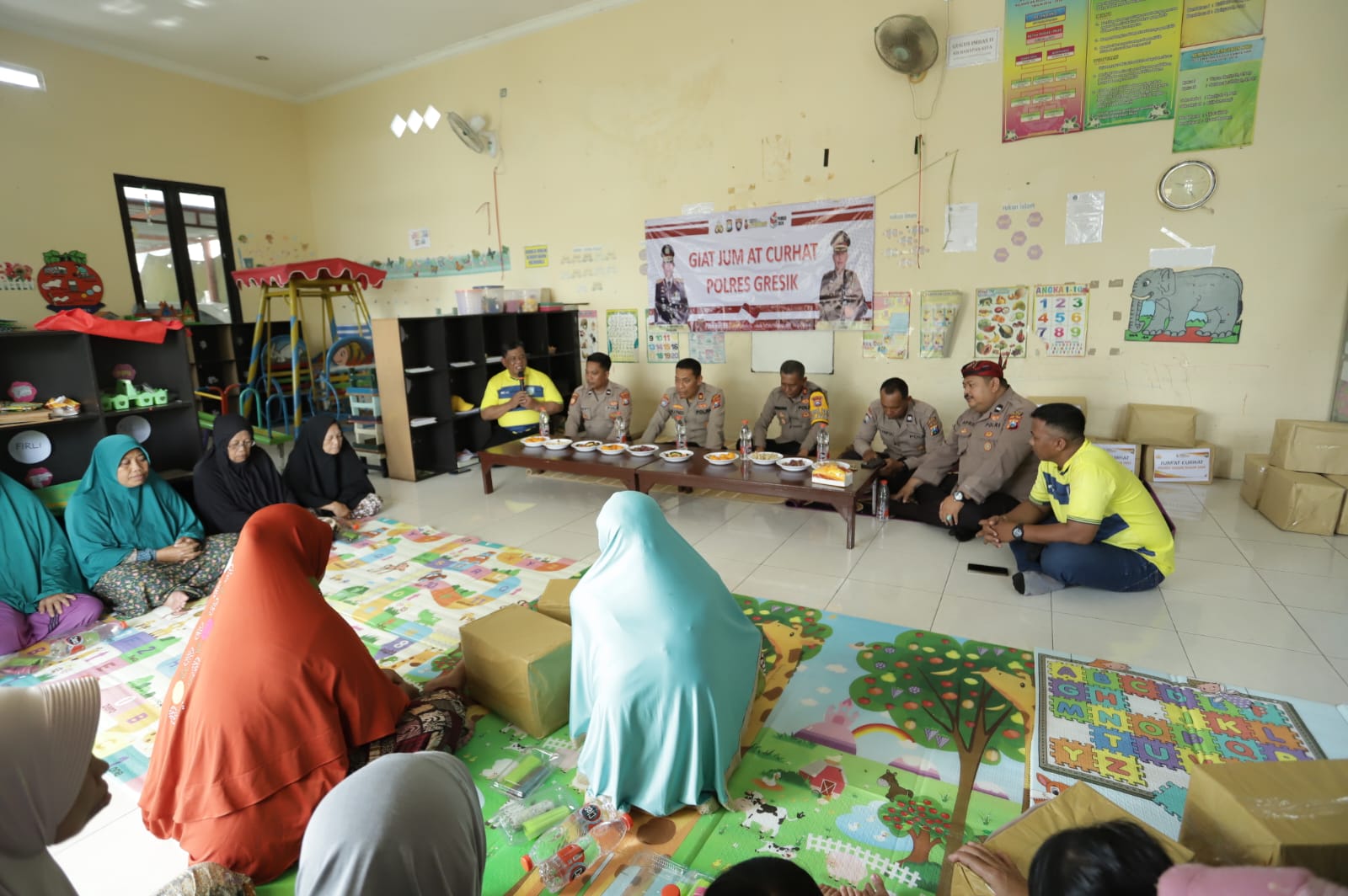 “Terima kasih kepada Polres Gresik telah mengunjungi dan bersosialisai kepada masyarakat dalam rangka jumat curhat ini,: Kata Kepala Desa