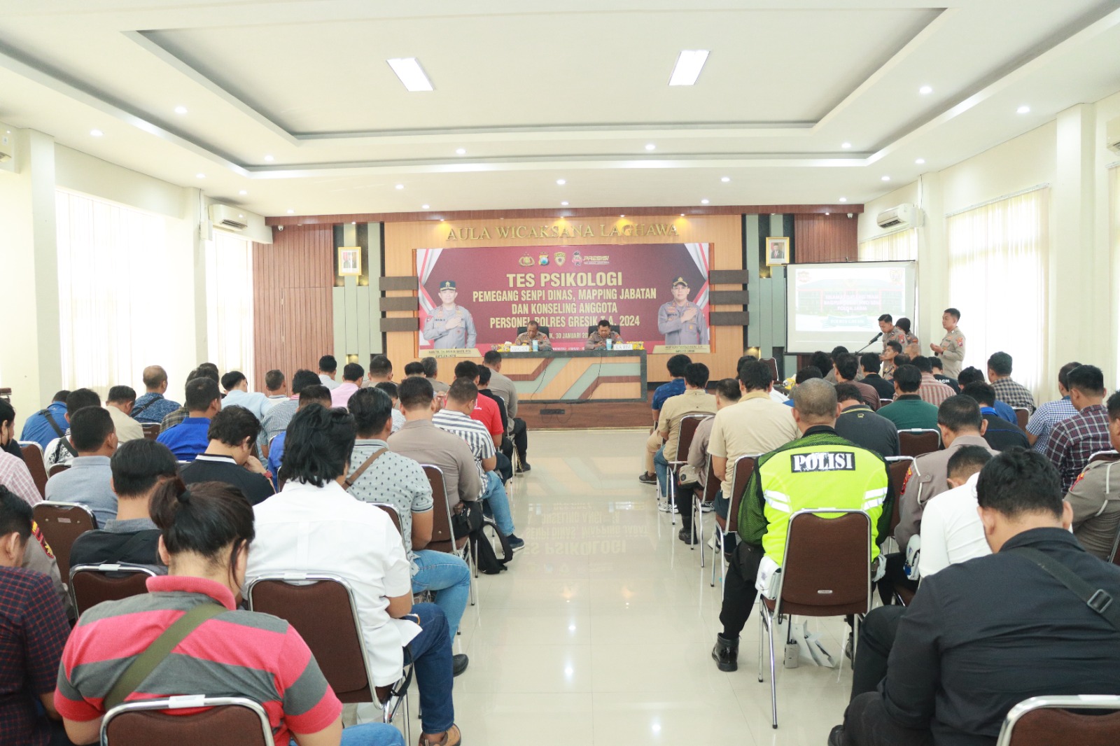 Test psikologi ini diikuti oleh seluruh anggota Polres Gresik yang memiliki senjata api dinas, baik perwira maupun bintara. Test ini dilaksanakan oleh tim psikolog dari Polda Jatim.