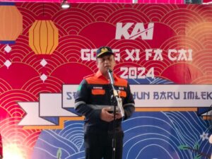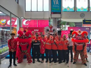 Lintas Surabaya, urabaya – Dalam rangka rayakan Hari Raya Imlek KAI Daop 8 Surabaya mempersembahkan atraksi Barongsai di Stasiun Surabaya Gubeng.Dalam aksinya, Barongsai tersebut secara seremoni memberikan kue keranjang kepada Executive Vice President KAI Daerah Operasi 8 Surabaya, Wisnu Pramudyo, sebagai simbol penghormatan dan juga rezeki bagi perusahaan.