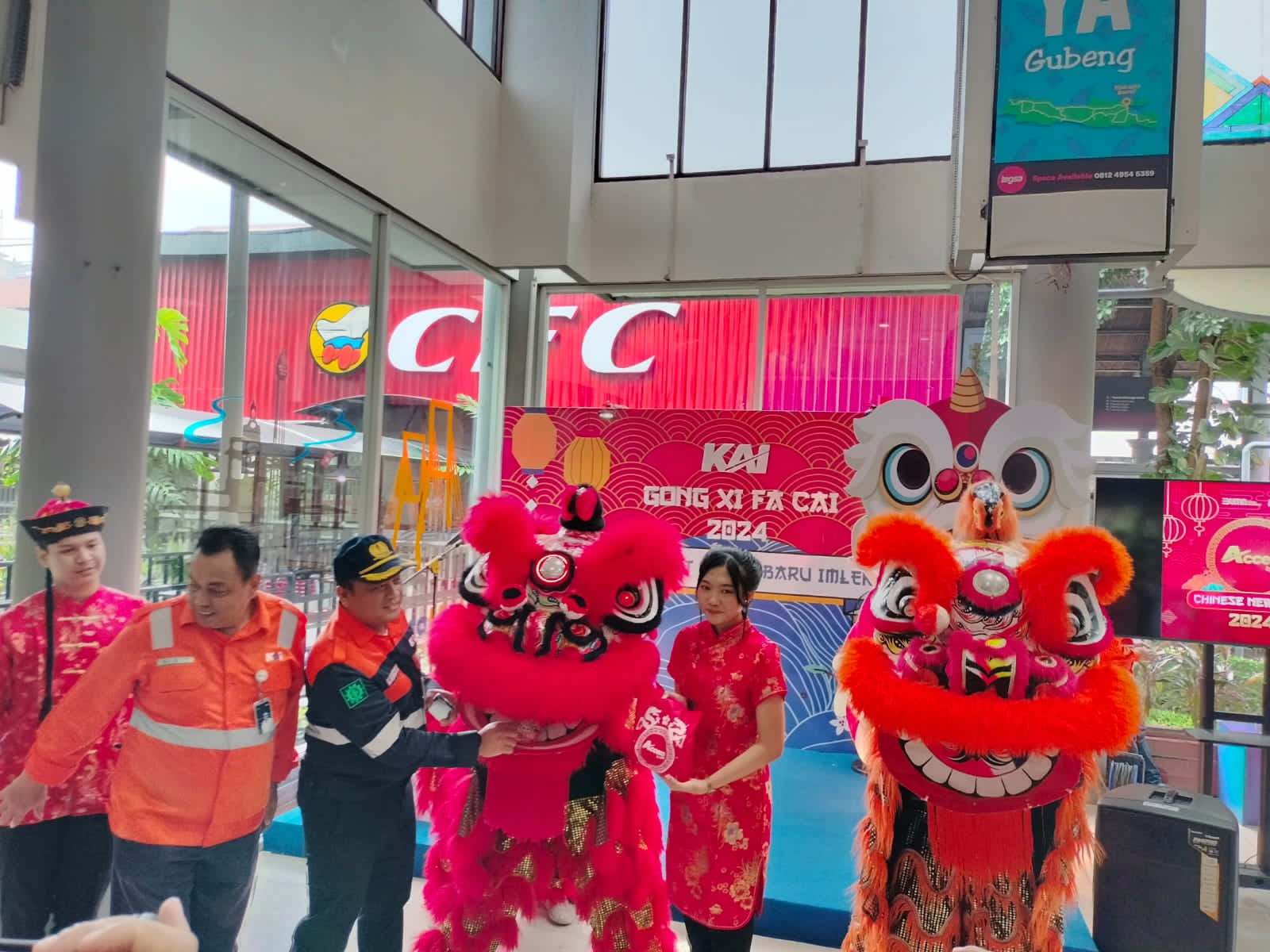 Tidak hanya itu, atraksi barongsai masih berlanjut dengan membagikan puluhan kue keranjang dan minuman kepada pelanggan yang menunggu keberangkatan KA di Stasiun Surabaya Gubeng, dan gift surprise kepada pelanggan KA yang berulang tahun pada tanggal 10 Februari 2024 dan melakukan pembelian melalui aplikasi Access by KAI.