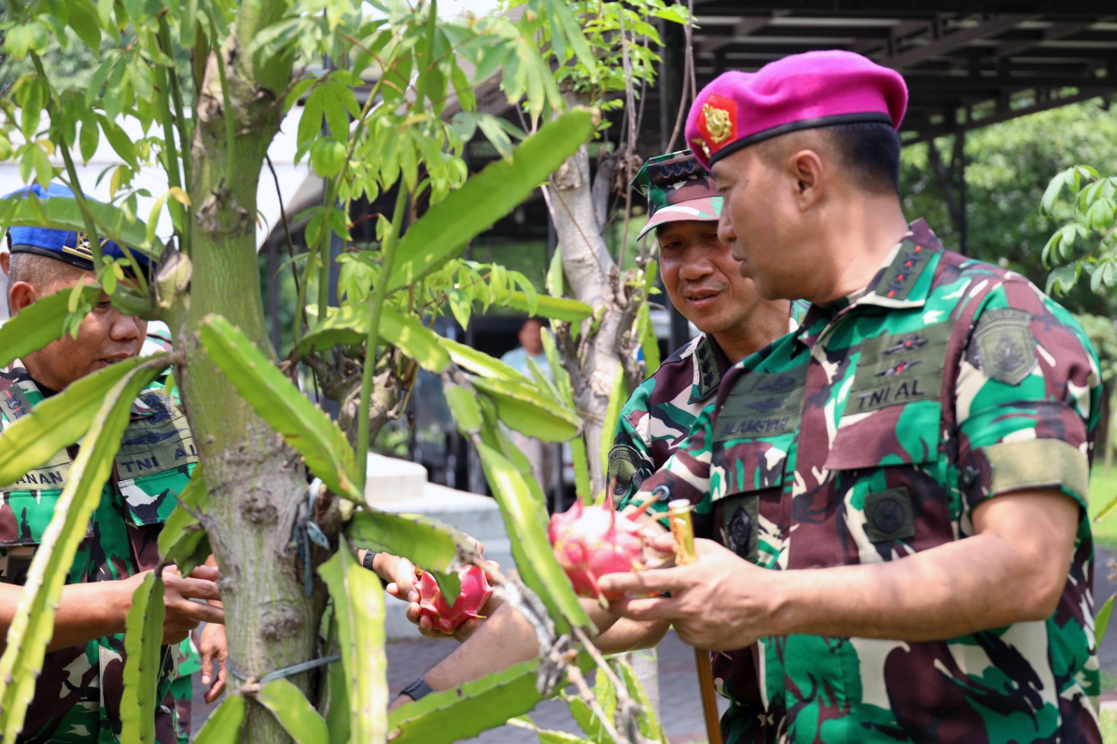 Lintas Surabaya, Surabaya – Komandan Kodiklatal (Dankodiklatal) Letjen TNI Marinir Nur Alamsyah disela-sela kesibukannya dengan didampingi Kepala Dispen (Kadispen) Kodiklatal, Kolonel Marinir Suharyono mengunjungi kantor Dispen Kodiklatal, dan berkesempatan melaksanakan Panen Buah Naga di Taman Ketahanan Pangan Dispen Kodiklatal, Bumimoro Surabaya. Kamis (15/02/2024).