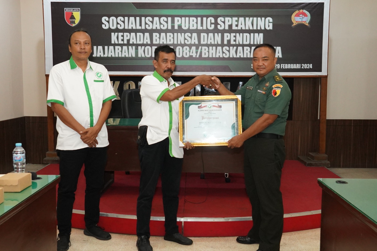 Lintas Surabaya, Surabaya – Sosialisasi Publik Speaking di Markas Korem Jalan Ahmad Yani 1, Kota Surabaya, Kamis (29/2/2024) di ikuti sebanyak kurang lebih 30 Babinsa di lingkungan Korem 084/ Bhaskara Jaya