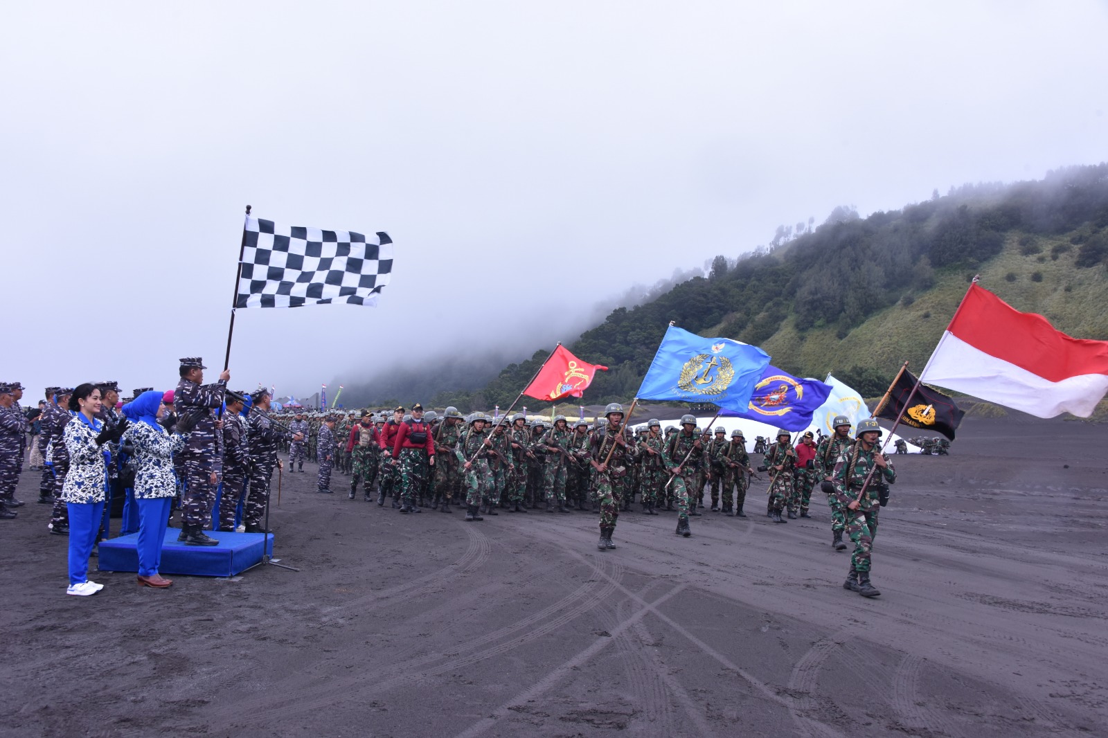 Lintas Surabaya, Surabaya – Komandan Kodiklatal (Dankodiklatal) Letjen TNI Marinir Nur Alamsyah mendampingi Kepala Staf Angkatan Laut (Kasal) Laksamana TNI Dr. Muhammad Ali beserta Petinggi TNI AL lainnya melepas Siswa Pendidikan Pendidikan Komando (Dikko) Marinir Angkatan 173 Kodikmar Kodiklatal yang melaksanakan Lintas Medan (Limed) dari Lautan Pasir, Gunung Bromo Probolinggo, Jawa Timur. Kamis (14/03/2024).