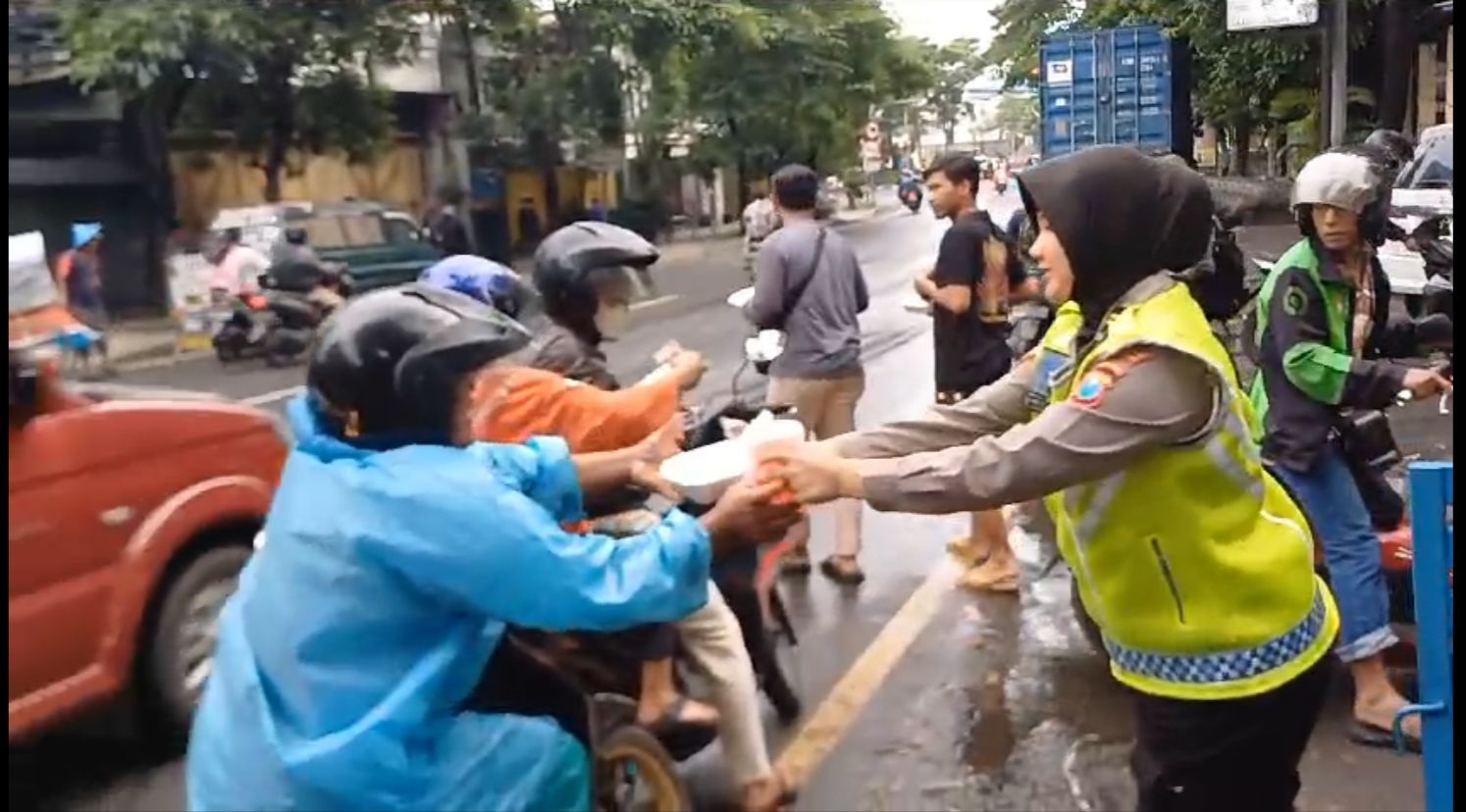 Satlantas Polres Pelabuhan Tanjung Perak Berbagi Takjil Bagi Pengguna Jalan