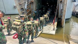 Lintas Surabaya, Surabaya – Jelang Penutupan Pendidikan (Tupdik) Tahap Dasar Golongan, 556 Siswa Dikmata TNI AL Angkatan 43/2 TA. 2023 melaksanakan Latihan Praktek (Lattek) Renang Laut yang dilanjutkan Berlayar dengan KRI Teluk Banten-516 jajaran Satuan Amfibi (Satfib) Koarmada II, bertempat di Kolam Kombasin dan Dermaga “D” Selatan Koarmada II, Ujung Surabaya. Rabu, (20/03/2024).
