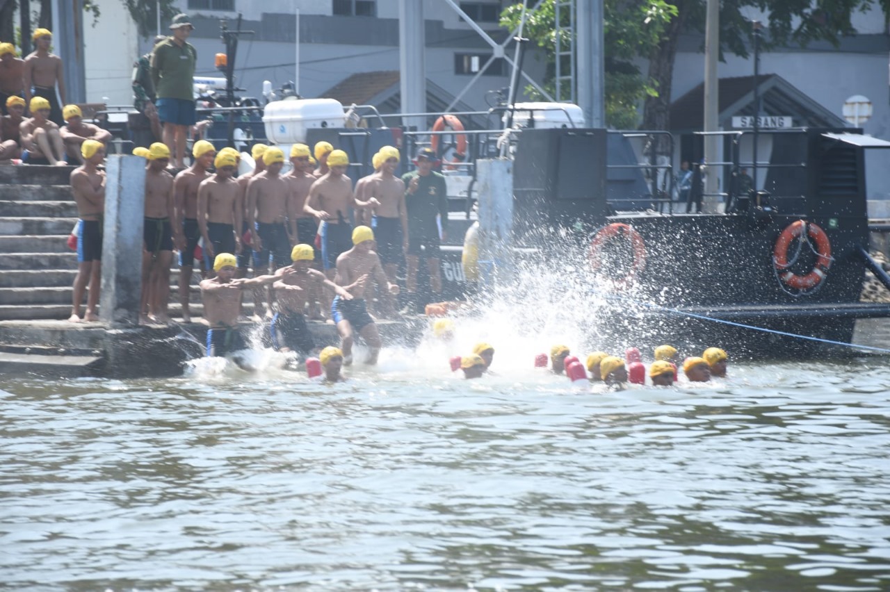 Lintas Surabaya, Surabaya – Jelang Penutupan Pendidikan (Tupdik) Tahap Dasar Golongan, 556 Siswa Dikmata TNI AL Angkatan 43/2 TA. 2023 melaksanakan Latihan Praktek (Lattek) Renang Laut yang dilanjutkan Berlayar dengan KRI Teluk Banten-516 jajaran Satuan Amfibi (Satfib) Koarmada II, bertempat di Kolam Kombasin dan Dermaga “D” Selatan Koarmada II, Ujung Surabaya. Rabu, (20/03/2024).