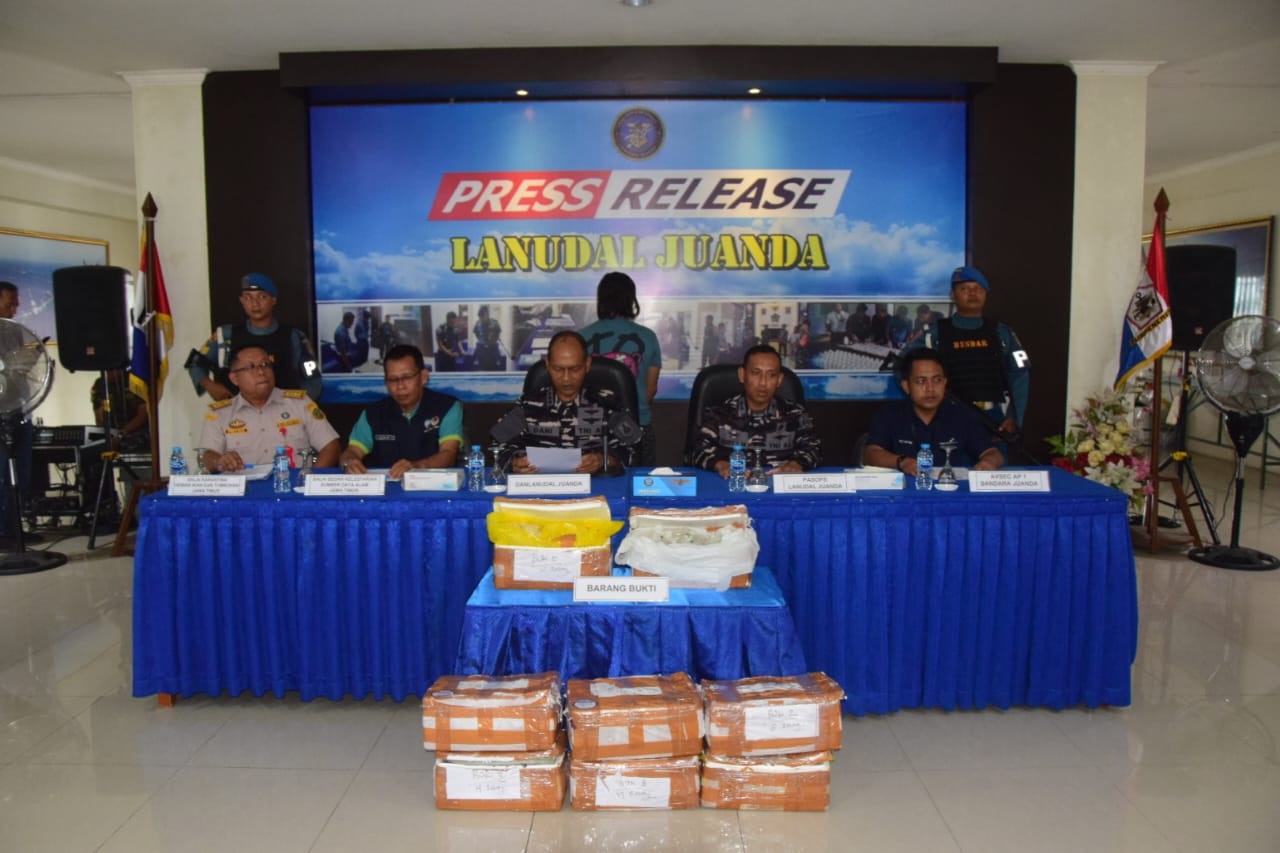 “Dalam waktu setahun terakhir sudah banyak kasus dengan berbagai macam modus yang telah diselesaikan oleh Lanudal Juanda yang semuanya dilaksanakan proses hukum secara transparan, meliputi Penggagalan pengiriman Narkoba, Penggagalan penyelundupan Benih Bening Lobster, penyelundupan satwa langka, senjata api serta penangkapan-penangkapan lainnya.