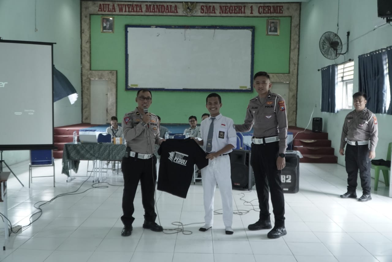 Lintas Surabaya, Gresik – Satlantas Polres Gresik melakukan Ruwatan Lantas Police Go to School di SMA Negeri Cerme, Kecamatan Cerme Kabupaten Gresik, Selasa (14-04-2024).