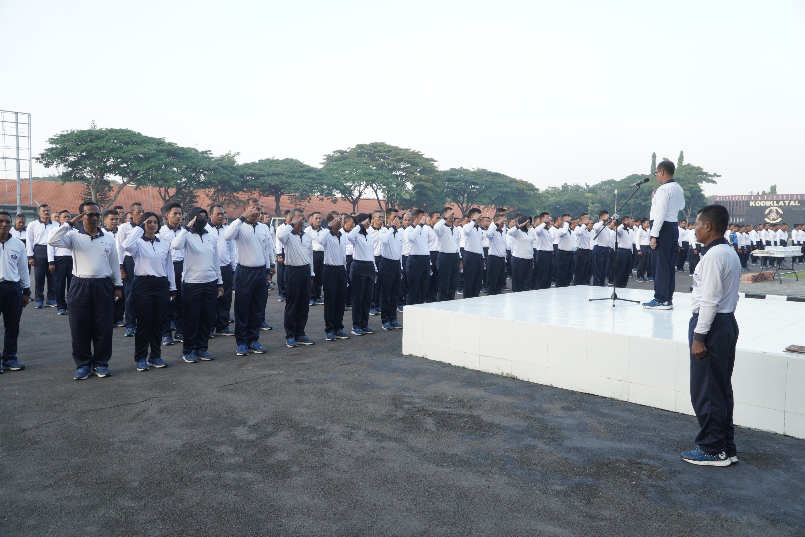 Olah raga rutin hari Selasa bersama personel Kodiklatal yang di awali dengan stretching, senam gembira dan aerobik serta jalan sehat mengelilingi Kesatrian Kodiklatal ini turut dihadiri para Pejabat Utama (PJU) Kodiklatal dan para Perwira, Bintara, Tamtama, serta PNS di lingkungan Kodiklatal. (red)