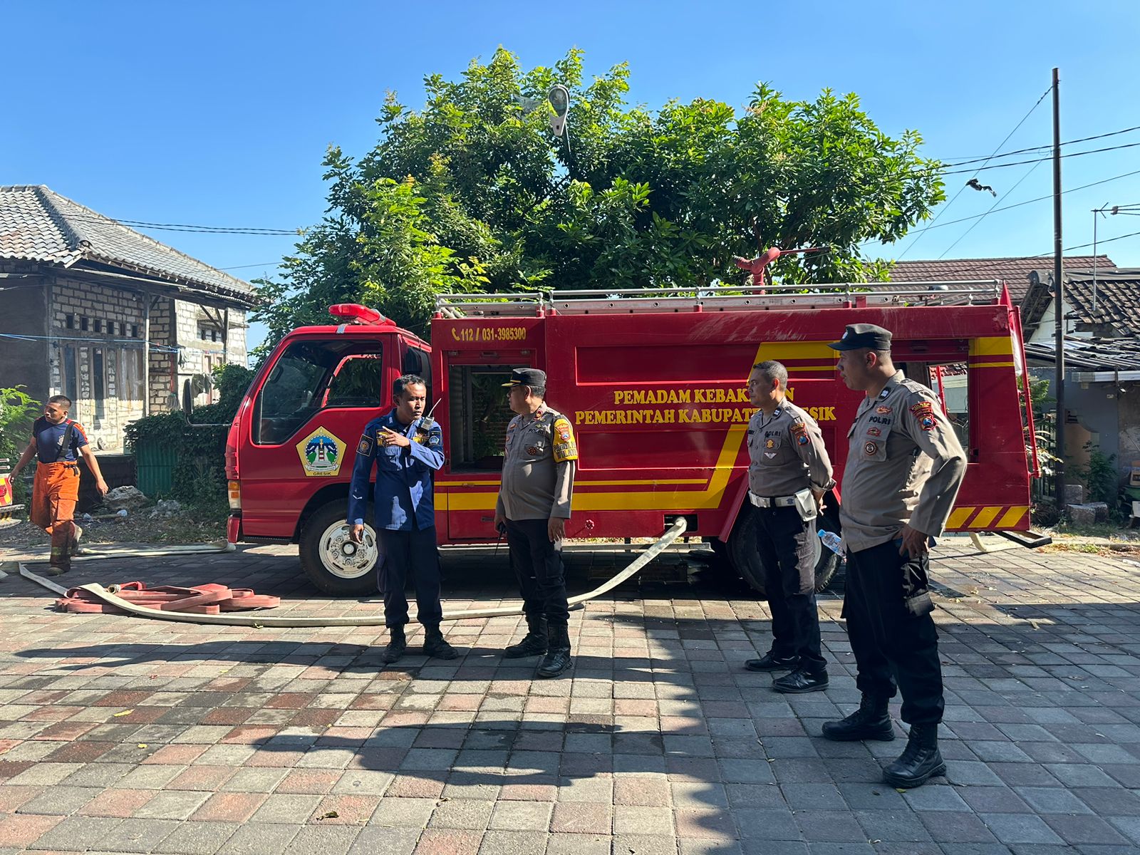 Dua unit mobil PMK Kabupaten Gresik tiba di lokasi kejadian dan langsung melakukan upaya pemadaman. Anggota Polsek Kebomas turut membantu mengamankan lokasi dan mengendalikan massa warga yang ingin melihat dari dekat. Setelah berjibaku selama kurang lebih satu setengah jam, api berhasil dipadamkan