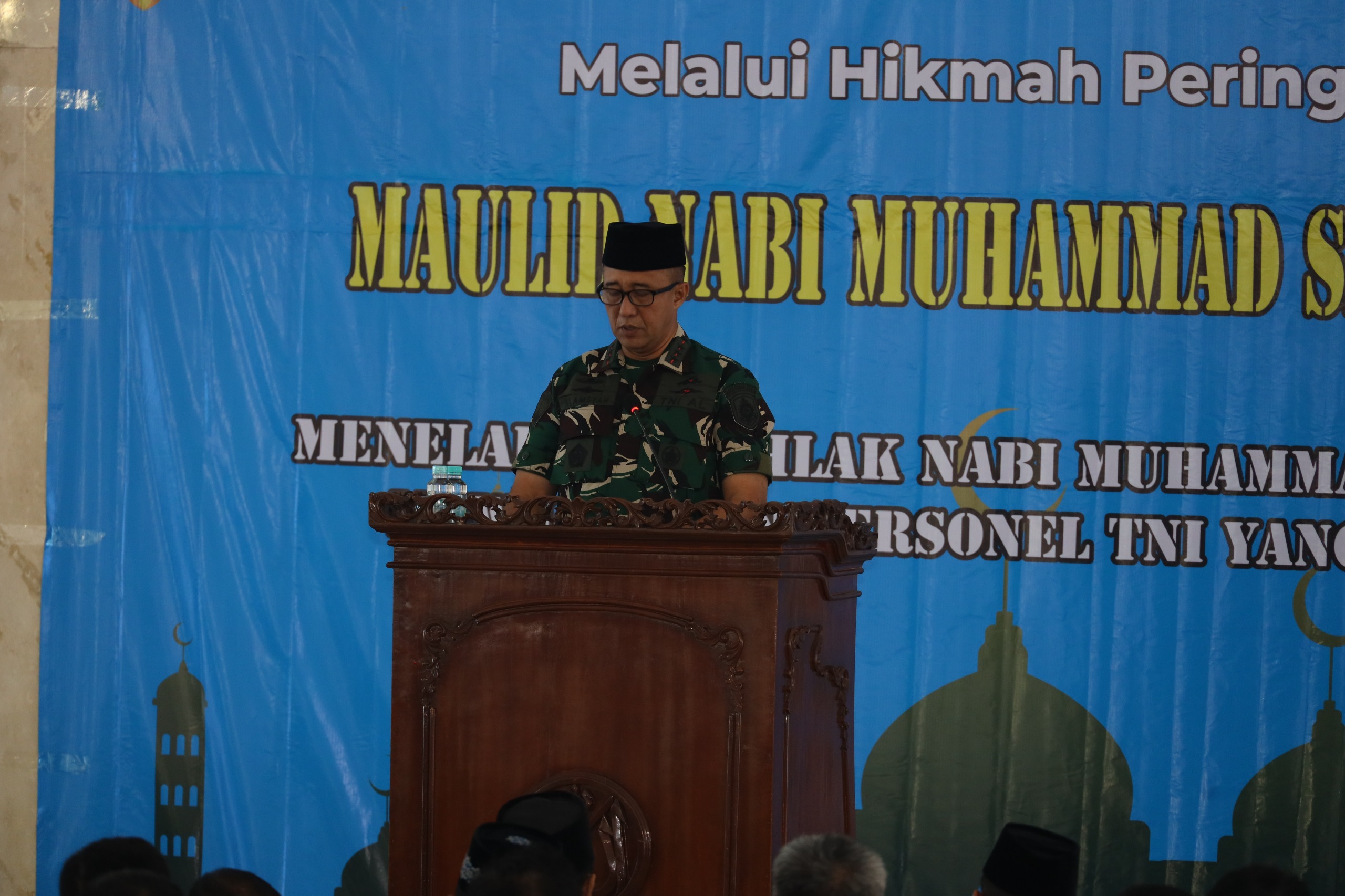 Lintas Surabaya, Surabaya – Komandan Kodiklatal (Dankodiklatal) Letjen TNI Marinir Nur Alamsyah beserta Ketua Gabungan Jalasenastri Kodiklatal Ny. Ayu Nur Alamsyah menghadiri Peringatan Maulid Nabi Muhammad SAW 1446 H/2024 M yang bertemakan, “Meneladani akhlak Nabi Muhammad SAW dalam mewujudkan personel TNI yang religius”, bertempat di Masjid Ibadurrahman Kodiklatal Bumimoro Surabaya pada Kamis (26/09/2024).