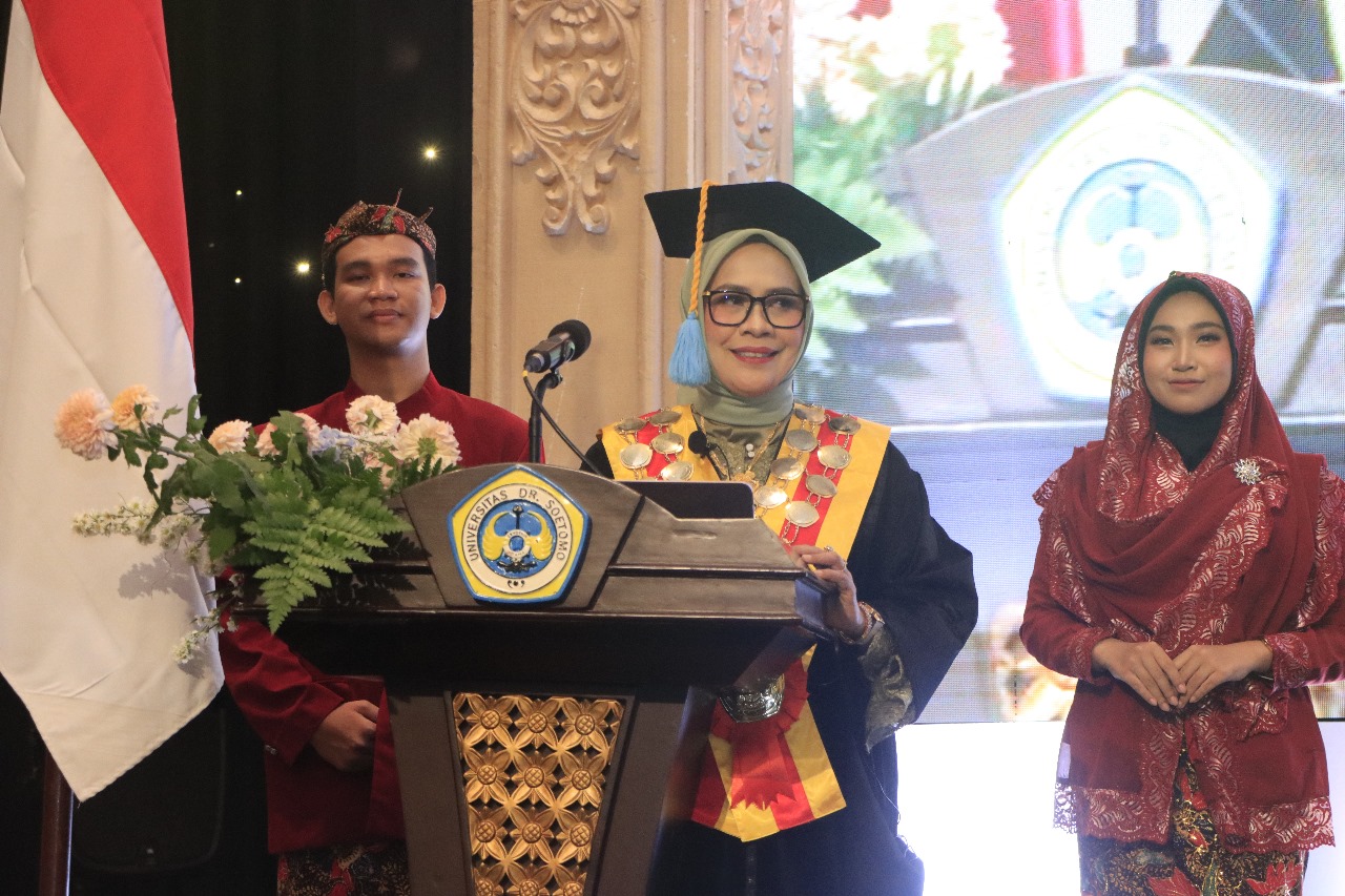 Acara digelar di Dyandra Convention Center, dipimpin rektor Prof. Dr. Siti Marwiyah, SH, MH. Dalam sambutannya, Siti Marwiyah berpesan agar para lulusan tetap belajar dan mengasah kemampuan untuk bisa survive di tengah masyarakat. “Ilmu yang anda pelajari selama di kampus, hanyalah sebagian kecil dari apa yang dibutuhkan untuk eksis di tengah lingkungan pekerjaan anda, baik sebagai karyawan, profesional, wirausahawan atau di bidang apapun nantinya anda akan bekerja nantinya. Karena itu, anda harus terus belajar selama hajat di kandung badan. Buat anda yang masih S1, silakan lanjut ke S2. Begitu pun yang sudah S2, jika memungkinkan silakan lanjut lagi ke S3 dan meraih gelar Doktor. Apalagi di Unitomo khan juga ada program S2 dan S3, jadi tidak perlu jauh-jauh”, ujar Iyat, panggilan akrab rektor wanita pertama Unitomo ini.