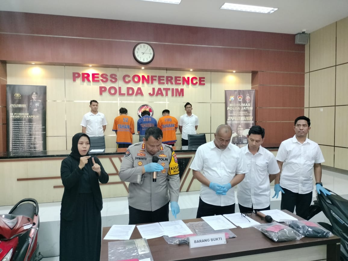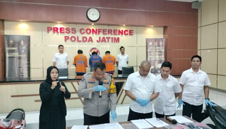 Lintas Surabaya, Surabaya – 3 tersangka Kasus Curanmor di wilayah Balong panggang Gresik dan Balong Bendo Sidoarjo, berhasil ditangkap Subdit Jatanras Ditreskrimum Polda Jatim
