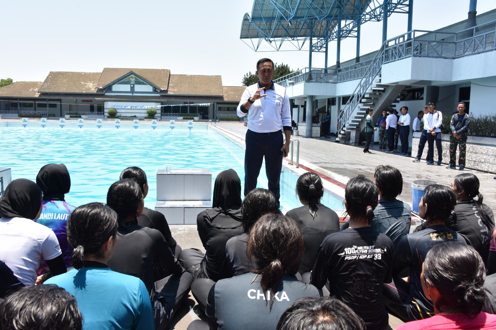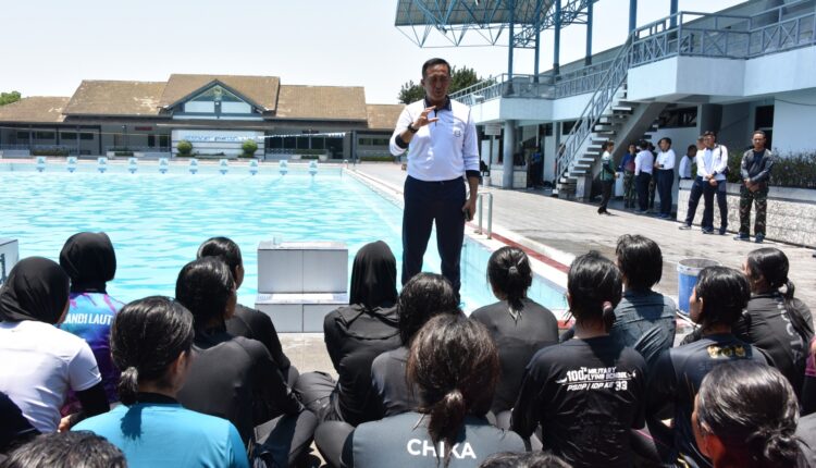 Lintas Surabaya, Surabaya – Guna memberikan semangat dan motivasi, Komandan Kodiklatal (Dankodiklatal) Letnan Jenderal TNI Marinir Nur Alamsyah meninjau pelatihan Accelerated Free Fall (AFF) Korps Wanita Angkatan Laut (Kowal) Tahun 2024 di Kolam Renang Tirta Yudha, Juanda, Sidoarjo.