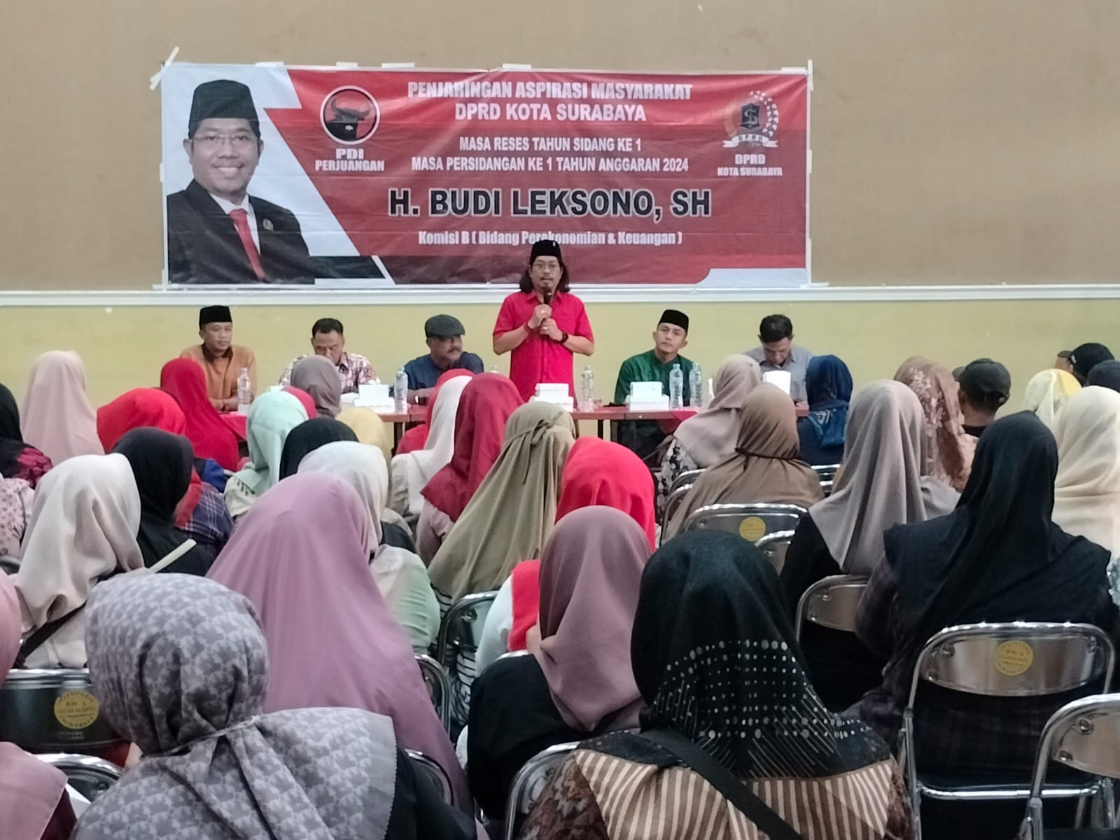 Lintas Surabaya, Surabaya – Dalam kegiatan reses sidang ke1 tahun anggaran 2024 di Balai RW III Jl. Sedayu, Moro Krembangan, Kamis, 31 Oktober 2024, anggota DPRD Kota Surabaya,Komisi B dari Fraksi PDIP, H. Budi Leksono, SH, yang akrab disapa Buleks, mendengarkan berbagai aspirasi dari warga setempat.