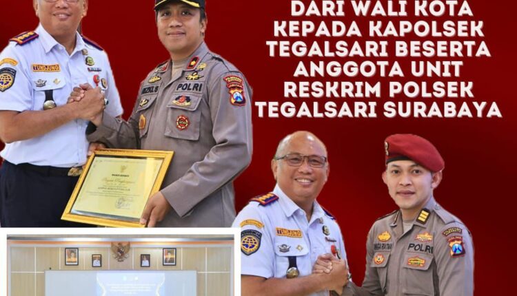 Lintas Surabaya, Surabaya – Kapolsek Tegalsari, Kompol Rizki Santoso, S.I.K., bersama Kanitreskrim AKP Angga Riatma, S.Tr.K., S.I.K., M.H., dan personel Reskrim Polsek Tegalsari menerima penghargaan dari Pj. Wali Kota Surabaya, Restu Novi Widiani, melalui Kepala Dinas Perhubungan Kota Surabaya, Tundjung Iswandaru, pada Selasa (19/11).