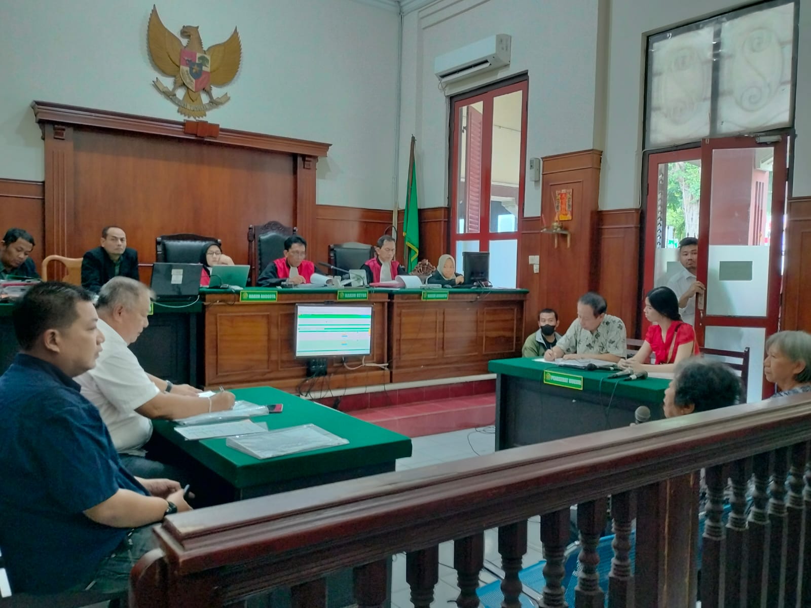Sidang dipimpin oleh Ketua Majelis I Dewa Gede Suarditha dengan agenda mendengarkan keterangan saksi, yakni Eva (81) dan Indah (63), yang merupakan tetangga penggugat.Sempat memanas dan terjadi debat antara kuasa hukum penggugat dan tergugat.Kuasa hukum penggugat menolak keras tergugat membawa anak di bawah umur dilibatkan di persidangan.