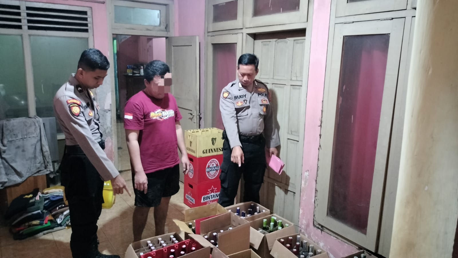 Setibanya di tempat kejadian perkara (TKP), petugas menemukan berbagai jenis miras yang disimpan di rumah pelaku.