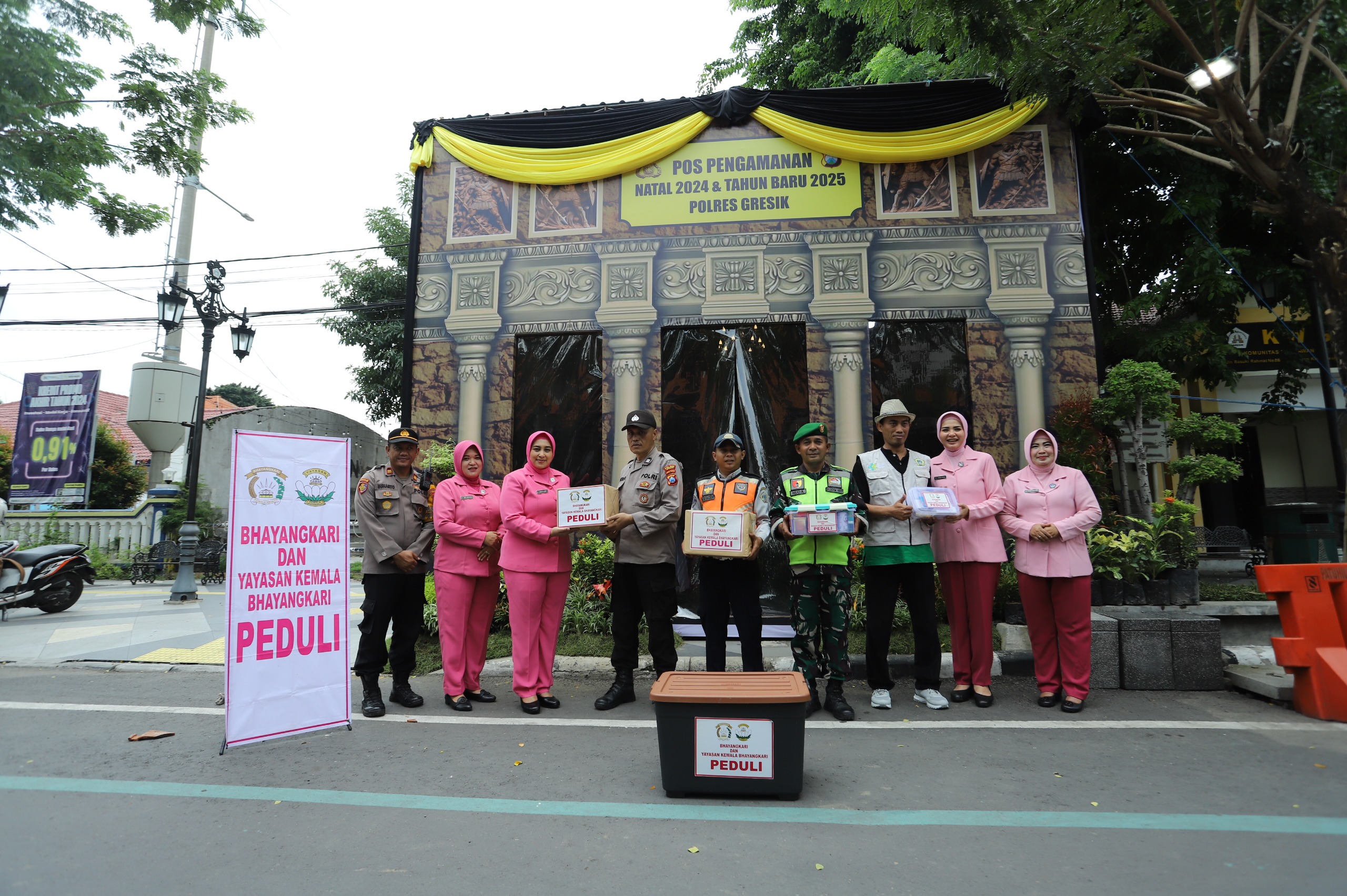 Lintas Surabaya, Gresik – Dalam rangka memberikan dukungan kepada personel pengamanan Natal 2024 dan Tahun Baru 2025 (Nataru), Ketua Bhayangkari Cabang Gresik, Ny. Chinthya Arief Kurniawan, didampingi Wakil Ketua Bhayangkari Ny. Ferrani Danu Anindito, bersama jajaran pengurus Bhayangkari Cabang Gresik, mengunjungi sejumlah Pos Pengamanan (Pos Pam) dan Pos Pelayanan di wilayah Kabupaten Gresik pada Selasa (24-12-2024).