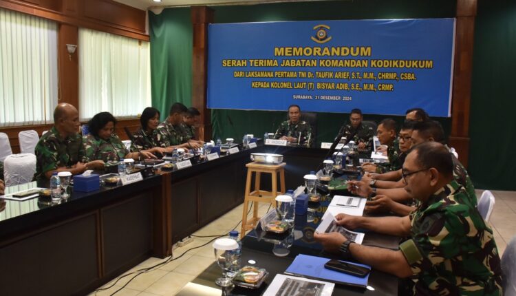 Lintas Surabaya, Surabaya – Menjelang Serah Terima Jabatan (Sertijab), Komandan Kodikdukum (Dankodikdukum) Kodiklatal Laksma TNI Dr. Taufik Arief melaksanakan Memorandum kepada penggantinya yaitu Kolonel laut (T) Bisyar Adib, bertempat di Ruang Rapat Mako Kodikdukum Kodiklatal, Bumimoro Surabaya. Selasa (31/12/2024).