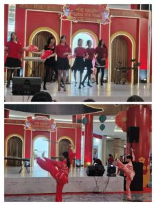 Berbagai pertunjukan yang ditampilkan meliputi seni wushu, tari tradisional Tiongkok, pembacaan puisi Mandarin, penampilan band dengan lagu-lagu Mandarin, hingga permainan buceng.