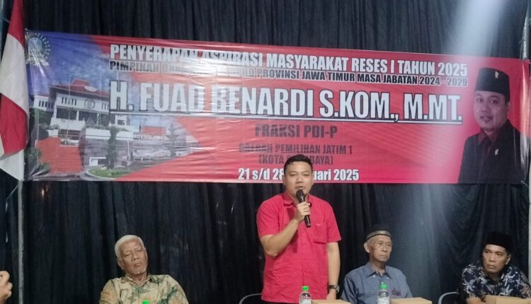 Lintas Surabaya, Surabaya – Anggota DPRD Provinsi Jawa Timur, H. Fuad Benardi, S.Kom., M.MT., dari fraksi PDIP menggelar reses pertama tahun 2025 untuk menyerap aspirasi masyarakat. Acara ini berlangsung pada Rabu malam, 26 Februari 2025, pukul 20.00 WIB di Jl. Bogen 1 No. 17, depan Balai RT 08 RW IV, Kelurahan Ploso, Kecamatan Tambaksari, Surabaya.