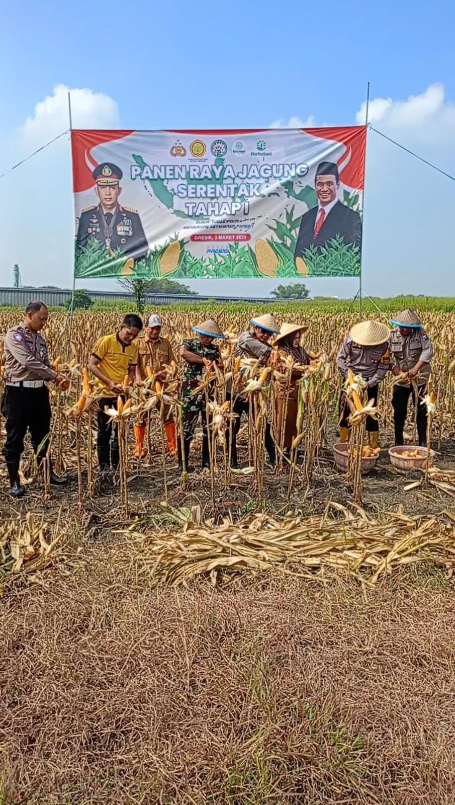 Kapolres Gresik, AKBP Rovan Richard Mahenu, dalam keterangannya menyampaikan apresiasi atas terselenggaranya kegiatan ini. Ia menegaskan bahwa panen raya jagung merupakan langkah strategis dalam memastikan ketersediaan pangan sekaligus meningkatkan kesejahteraan petani.