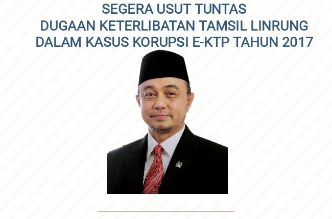 Lintas Surabaya, Jakarta – Kaukus Muda Anti Korupsi (KAMAKSI) mendesak Komisi Pemberantasan Korupsi (KPK) segera menuntaskan kasus korupsi E-KTP tahun 2017. Nama Tamsil Linrung mantan Pimpinan Badan Anggaran DPR RI, yang kini menjabat Wakil Ketua DPD RI 2024-2029, masuk dalam pusaran korupsi E-KTP pada tahun 2017 dengan terdakwa Setya Novanto. Hal tersebut tertuang dalam Putusan Mahkamah Agung RI Nomor 130/PID.SUS/TPK/2017/PN.JKT.PST yang didalamnya menyeret nama Tamsil Linrung yang pada saat itu menjabat pimpinan Badan Anggaran DPR RI.