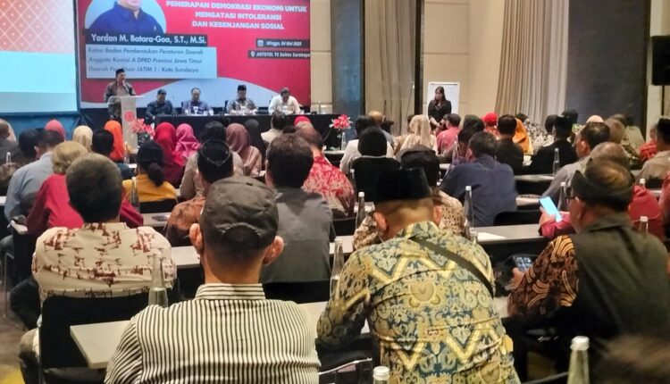 Lintas Surabaya, Surabaya — Anggota DPRD Provinsi Jawa Timur dari Fraksi PDIP, Yordan M. Batara-Goa, S.T., M.Si., menegaskan pentingnya penerapan demokrasi ekonomi sebagai solusi atas persoalan intoleransi dan kesenjangan sosial di Indonesia. Hal ini disampaikannya dalam acara Sarasehan bertajuk “Toleransi dan Keberagaman” yang digelar pada Minggu, 4 Mei 2025 di ARTOTEL TS Suites Surabaya.