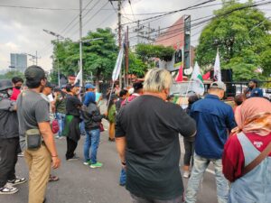 Lintas Surabaya – Aksi demonstrasi yang digelar oleh Arek Suroboyo Bergerak (ASB) bersama Pemuda Indonesia di depan pintu masuk Mapolda Jawa Timur hari ini, Kamis (8/5), menarik perhatian publik di Surabaya. Unjuk rasa ini menyoroti kasus penahanan ijazah oleh perusahaan CV Sentosa Seal (UD. Santoso Seal) yang dimiliki oleh JH Diana.