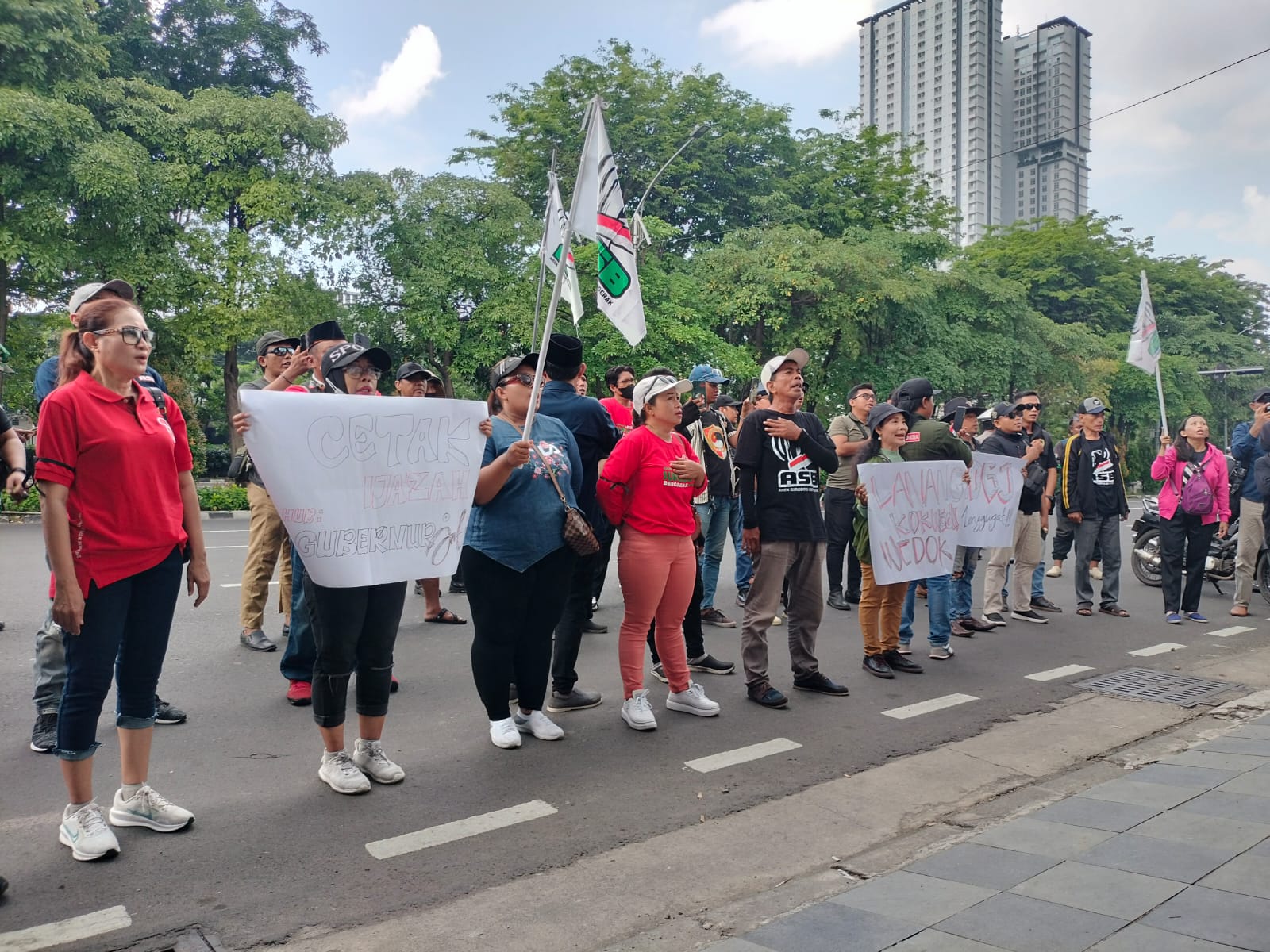 Lintas Surabaya – Aksi demonstrasi yang digelar oleh Arek Suroboyo Bergerak (ASB) bersama Pemuda Indonesia di depan pintu masuk Mapolda Jawa Timur hari ini, Kamis (8/5), menarik perhatian publik di Surabaya. Unjuk rasa ini menyoroti kasus penahanan ijazah oleh perusahaan CV Sentosa Seal (UD. Santoso Seal) yang dimiliki oleh JH Diana.