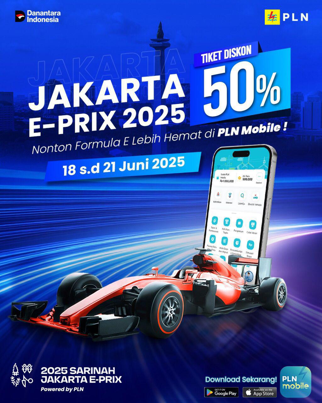 Lintas Surabaya, Jakarta – Dalam rangka menyemarakkan ajang balap mobil listrik internasional Jakarta E-Prix 2025, PT PLN (Persero) menghadirkan promo spesial berupa diskon 50% untuk pembelian tiket Formula E melalui aplikasi PLN Mobile. Promo ini berlaku sampai dengan tanggal 21 Juni 2025.