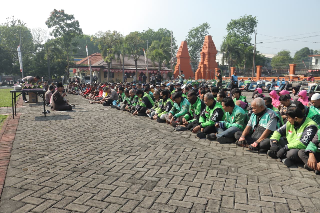 Polres Mojokerto Gelar Doa Bersama, Santunan Anak Yatim dan Bakti Sosial Bersama Ojol dan Bentor