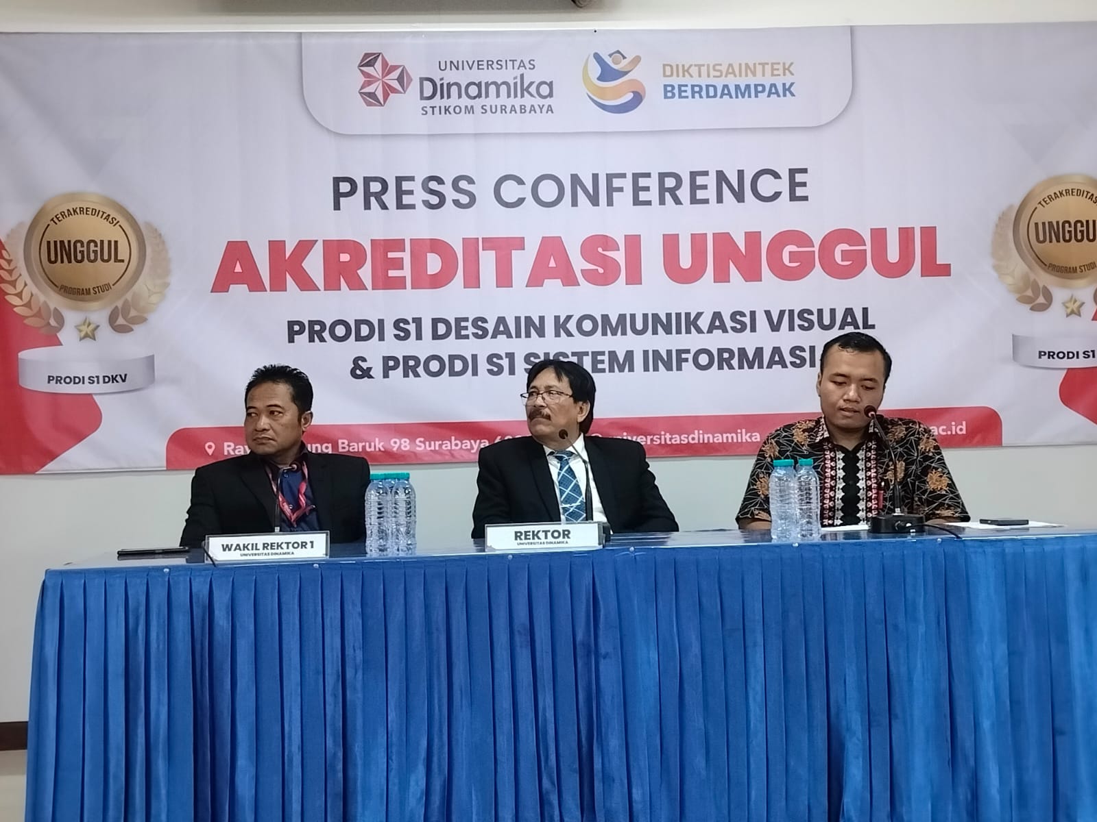 Wakil Rektor I Bidang Akademik, Kemahasiswaan, dan Alumni, Dr. Anjik Sukmaaji, S.Kom., M.Eng., menambahkan bahwa akreditasi unggul ini juga memperkuat peran Universitas Dinamika sebagai kampus yang berdampak bagi masyarakat.
