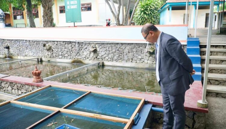 Selain memanen pisang, rombongan juga meninjau budidaya ikan yang dikelola secara mandiri oleh warga sekolah. Gubernur mengapresiasi kreativitas dan kolaborasi sekolah dalam memastikan keberlanjutan program.