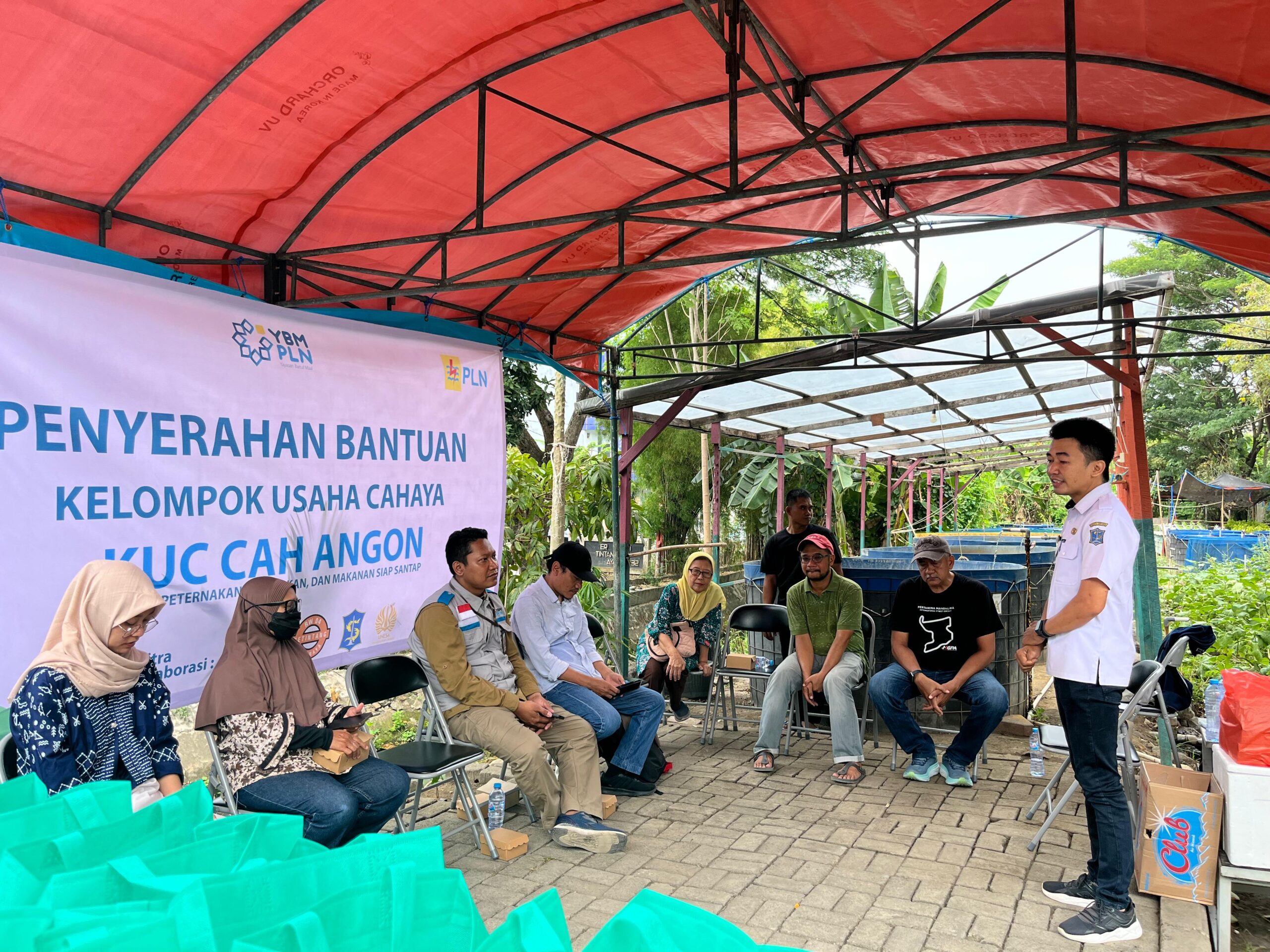Acara penyerahan bantuan berlangsung di lokasi peternakan ikan lele RW 04 Ketintang. Hadir dalam kegiatan tersebut jajaran YBM PLN UIP JBTB, perangkat kelurahan, Ketua RW 04, Ketua LPMK Ketintang, serta Wakil Dekan I dan II Fakultas Ketahanan Pangan (FKP) Unesa.