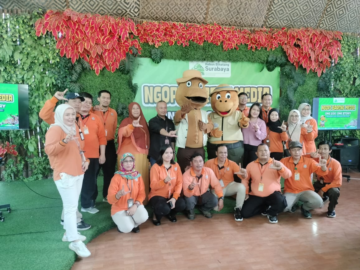 Peluncuran maskot baru ini disampaikan dalam kegiatan Ngopi Bareng Media bertajuk “One Zoo, One Story: Melanjutkan Cerita, Menyambut Masa Depan” yang digelar di PD Taman Satwa Kebun Binatang Surabaya, Minggu (21/12/2025).